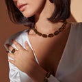 Necklace with natural Smoky Quartz stones with alternating hammered gold bead give this necklace a warm glow. This necklace can be worn from day until evening. Match it with the matching bracelet.