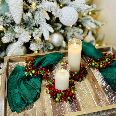 Set of 2 Sugared Red Berry Candle Rings-BOGO OFFER
