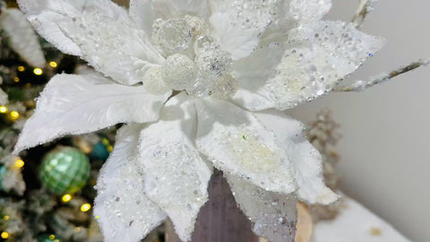Iced Jewel Encrusted Poinsettia w/ Frosted Birch Stem-BOGO OFFER