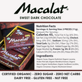 Macalat is a rich, smooth organic sweet dark chocolate created without sugar, dairy or bitterness. Sweetened and balanced with nutrient dense superfoods including lucuma and monk fruit. Does contain 3g sugar alcohol. Enjoy 70% Cacao without the bitter aftertaste of traditional dark chocolate.
