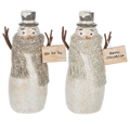 These sweet snowmen are ready to bring some cheer to your holiday decor. Each one is bundled up in a cozy knit-look scarf, topped with a glittery hat, and holding a festive sign, one reads “Merry Christmas” and the other “Ho ho ho.” Their twig arms and soft sparkle finish add the perfect touch of charm.