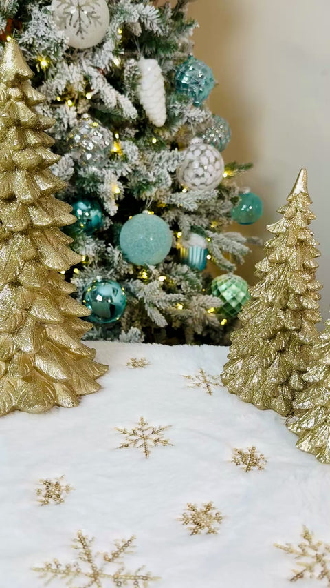 With a gold glitter base and a tiered glass design, it’s perfect for adding a little shimmer to your mantel, side table, or holiday centerpiece.