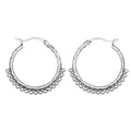By embracing simplicity, we become reacquainted with the joy of small things. Gleaming hoop earrings in hammered sterling silver are decorated with delicate beads along the outer ridge for a wear-with-everything earring style you'll reach for again and again.