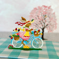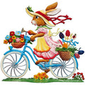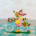 Dressed in her finest attire, this adorable bunny's outfit is finished off with a darling bonnet hat. As she rides along on her bicycle, you can see that she stopped to fill the baskets with vibrant flowers and Easter eggs.