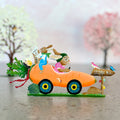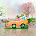 Embark on a fun journey with the Bunny in a Carrot Racer Hand Painted German Pewter Figurine. These two adorable bunnies embark on a race toward Ostern, the German word for Easter, aboard a charming carrot racing car.