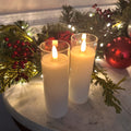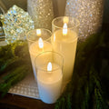 Each candle is housed in a sleek, clear glass cylinder, giving them a sophisticated look that complements any decor style.