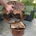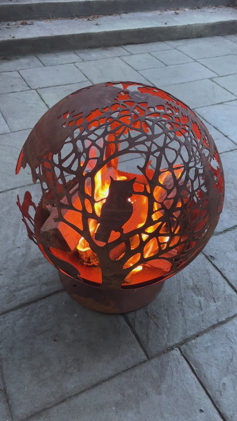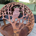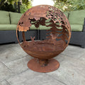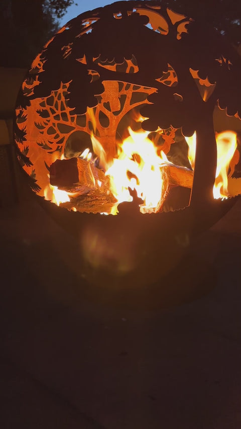 This stunning fire pit sphere features an intricate wildlife scene, laser-cut with precision from sturdy 3mm thick steel. The base and globe separate, allowing for easy cleanup and convenient transport.