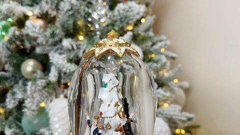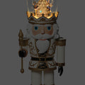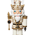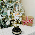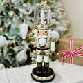 Standing 16.25" tall and adorned in white and gold attire, this nutcracker exudes sophistication and charm. Although, what really sets this Nutcracker apart is the enchanting rotating scene with Nutcracker characters inside his hat.