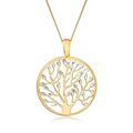 Widely recognized by many cultures, the tree of life is said to represent the four elements of nature and other spiritual symbols. Here, the tree is carefully crafted in diamond-cut and polished 18kt yellow gold over sterling silver with bright sterling silver details