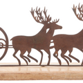 Crafted in a minimalist silhouette, this piece features Santa and his reindeer taking flight in a simple yet elegant design. The dark metal finish and wooden base create a cozy, natural look that is perfect for any Christmas display, from traditional to modern.