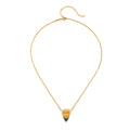 Let your guiding spirit be the compass on your path to truth; let the benevolent Universe bless you as you manifest your dreams. A locket necklace in 18kt gold plate features an arrow-shaped labradorite gemstone, stone of intuition and action. Lotus petals envelop the gemstone, signifying new beginnings and transformation. Accents of white topaz enhance clarity as they ignite intuition and manifestation. Wear this necklace as a spiritual talisman, or to implement your dreams.