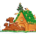 Spring is a season full of life, whether it's being born or taking the time to feel alive. This a loving momma dog surrounded by her playful puppies, nestled within a whimsical dog house adorned with a roof made of lush grass and vibrant flowers.'