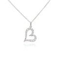 Sterling silver open heart pendant necklace with pave set cubic zirconia gemstones.