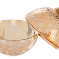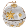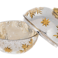 Add a touch of sparkle to your holiday decor with this elegant etched glass mercury glass container. Available in two designs, Gold Snowflake or Gold Star, each one features a removable lid and a beautiful silvery metallic finish. Perfect for holding treats, small ornaments, or just sitting pretty on a mantel or tabletop.