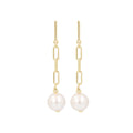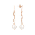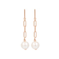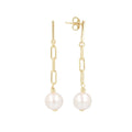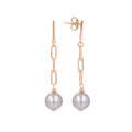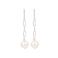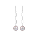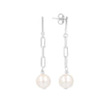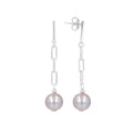 Earring consists of a high polished bar post and paperclip chain accented with a Ming pearl drop.