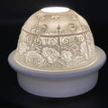 The Luumii Light LED Flower Motif Dome, available in multiple beautiful designs, is crafted from high-quality porcelain using the art of lithophany to create detailed candle domes.
