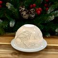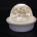 The Luumii Light LED Holiday Dome, available in multiple beautiful designs, is crafted from high-quality porcelain using the art of lithophany to create detailed candle domes.