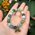 This beautiful 10mm Juniper Jade bead bracelet promotes Friendship, Harmony, and Renewal.